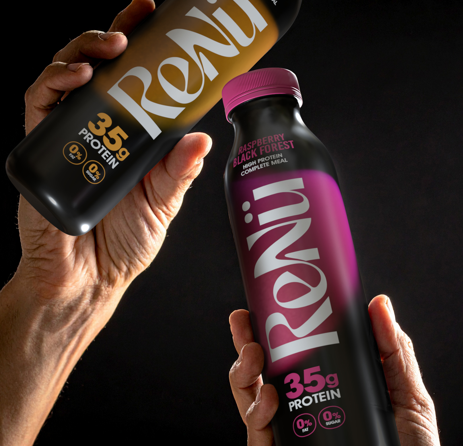 ReNü is a premium protein drink created for people entering the next stage of their lives with energy and purpose. It supports those returning to fitness or maintaining strength with a renewed sense of confidence and vitality. Six colourful bottles offer 20 grams of protein in refreshing flavours, while the sleek black range delivers 35 grams for deeper recovery. The brand positions strength, wellness and renewal as timeless qualities rather than fleeting trends.