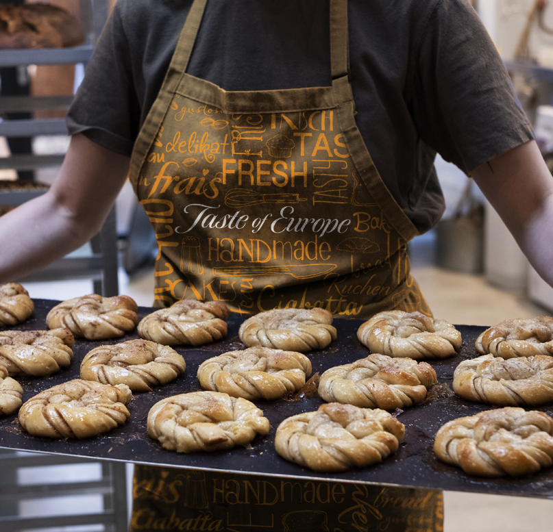 Taste of Europe champions authenticity through every touchpoint. The hand drawn typefaces and illustration style echo the artisan nature of the baking process and the human hands behind it. The colour palette is carefully considered: rich browns and oranges represent the warmth of breads, while fresh pinks highlight the indulgence of sweet pastries. Together, they create a modern yet timeless identity that reflects both tradition and contemporary taste.